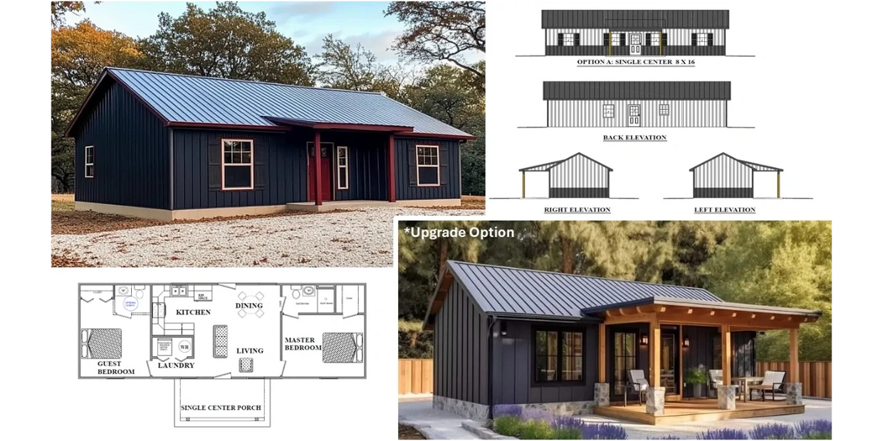 The Cozy Country Deluxe Cabin is 3 bed, 2,bath - 1,216 Sq Ft home on 3+/- acres or 5+/- acres of beautiful Ozark forest. This model has an option of a loft to be added.